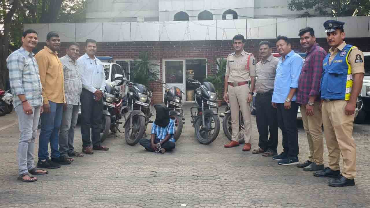 Hyderabad: The Afzalgunj Police on Sunday apprehended an automobile theft offender and recovered five stolen motorcycles from his possession, bringing a breakthrough in multiple theft cases across Hyderabad and Mahboob Nagar.