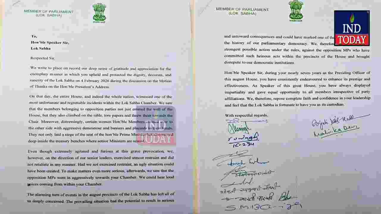 They further stated that the entire country watched what they described as an unfortunate scene in the Lok Sabha chamber. According to the allegations mentioned in the letter, opposition MPs rushed into the House well during the protest. They also allegedly attempted to climb onto the Speaker’s table. The letter claimed that papers were torn and thrown towards the Speaker during the disturbance.