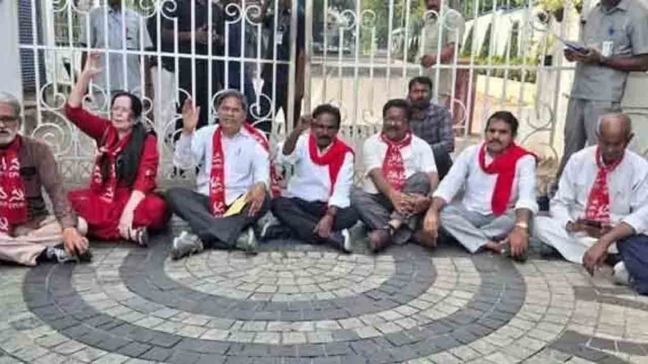 CPM Leaders Stage Protest At Raj Bhavan Gate