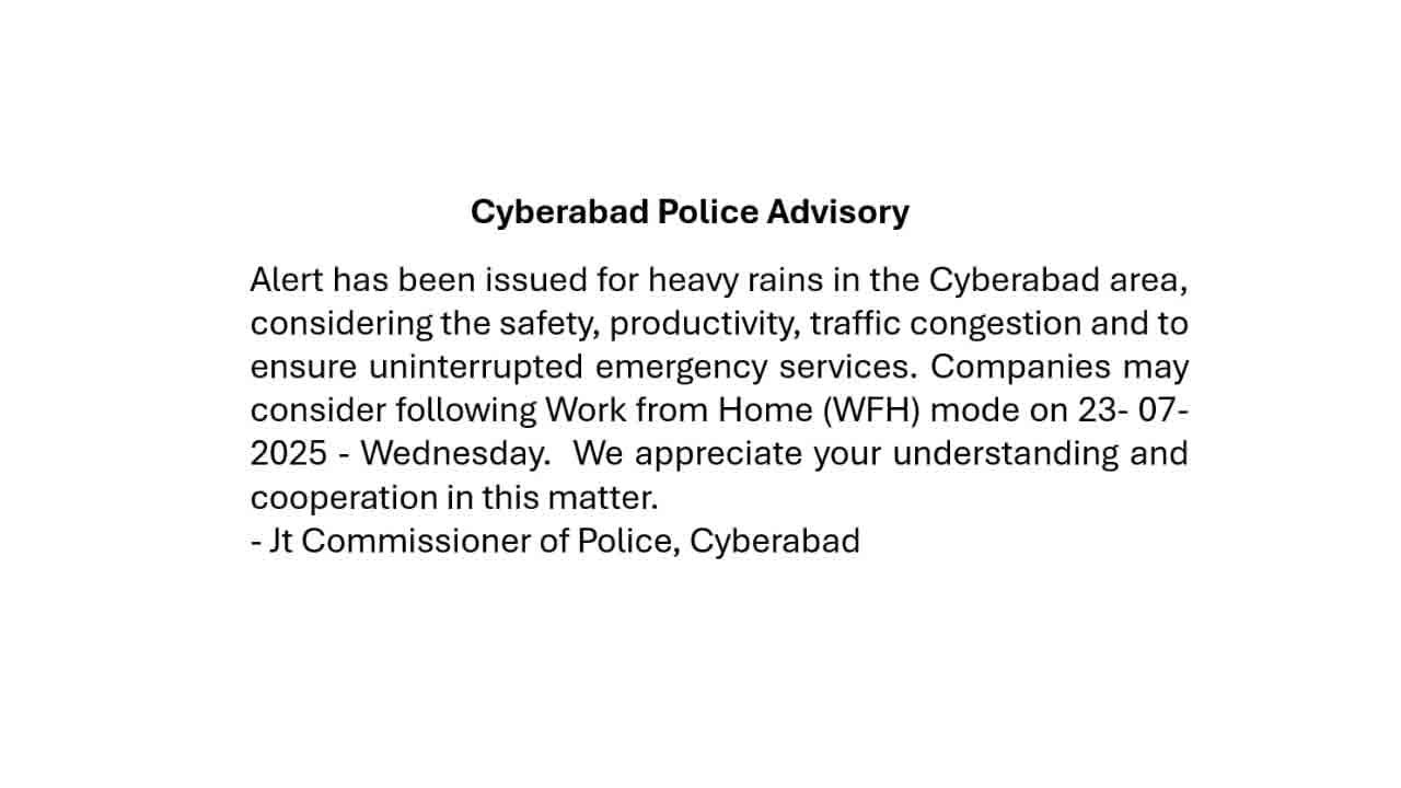 Return to "Cyberabad Police Urge IT Firms to Implement Work-From-Home Amid Heavy Rain Alert" cyberabad-police-1 Previous