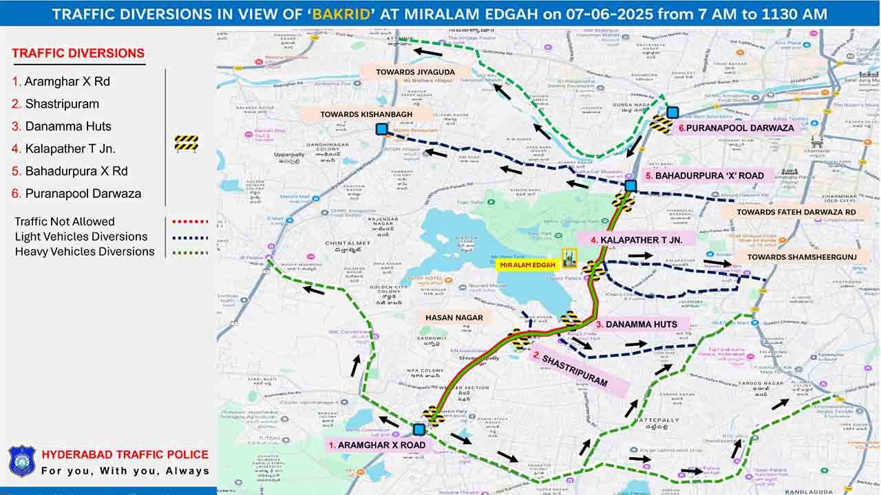 • Eid-ul-Adha In Hyderabad: Traffic Advisory Issued