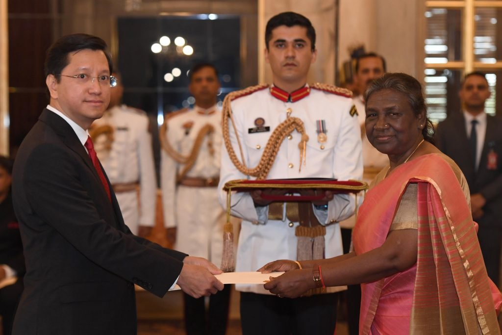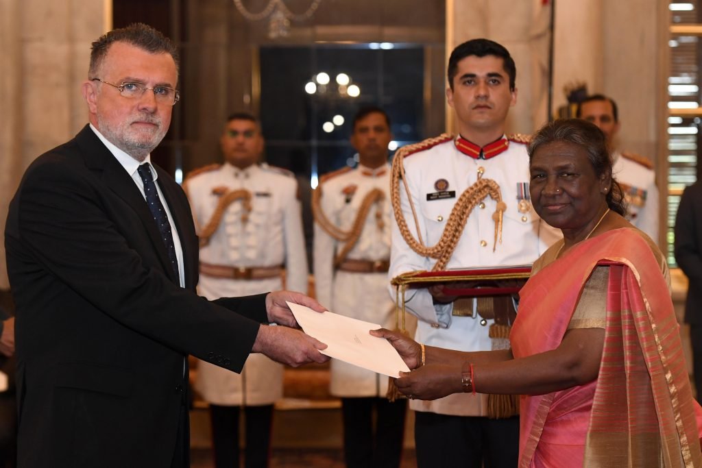 The President of India Droupadi Murmu accepted credentials from High Commissioner of Uganda and Ambassadors of Vietnam, Iran, Sweden and Belgium at a ceremony held at Rashtrapati Bhavan today (October 26, 2022).