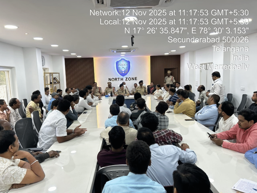The meeting held with North Zone hotels and lodges management of over 100 hotel and lodge owners and managers from Hyderabad’s North Zone attended, a meeting convened by the Deputy Commissioner of Police, North Zone, today, acting on instructions from the Commissioner of Police, Hyderabad City. The session, also attended by the ACP Gopalapuram and SHOs from North Zone, focused on ensuring all establishments operate strictly within the law, with special emphasis on public safety and statutory compliance.