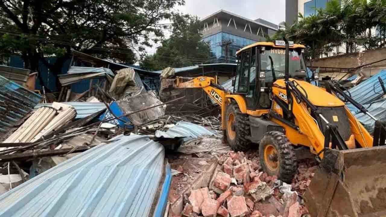 Illegal structures are being demolished in Bikshapati Nagar in Kondapur. HYDRA personnel are removing illegal structures on government land. The demolitions were carried out amidst heavy police security. The police are not allowing the media to approach the demolitions. The police are stopping the media and locals within two kilometers.