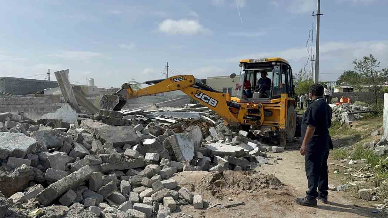 Hyderabad Disaster Response and Asset Protection Agency (HYDRAA) began the demolition early Sunday morning on 100 acres of land in Qutbullapur constituency in Medchal Malkajgiri district.
