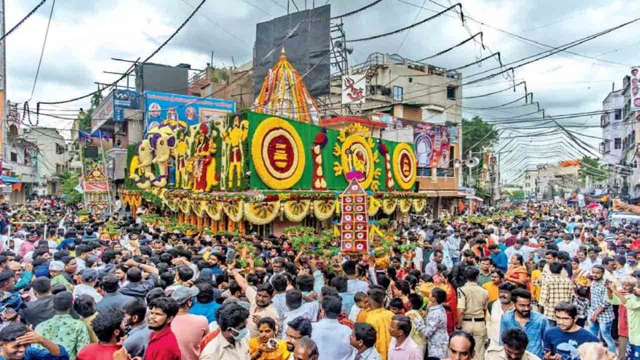 On this occasion, the temple will be beautifully decorated with colorful lights. The first day of the Bonalu Utsavam, which will begin from the 11th, will begin with Ganapati Homam in the morning, Saptasati Parayanam, Devi Abhishekam, Dhwajarohan, Shikhar Vuja, and Kalash Sthapana in the evening. On July 13, the Goddess Ghatam will be brought in a procession from the Shalibanda Kashi Vishwanatha Swamy Temple with Bhaja Bhajantri and Dappu Vaidhya and installed in the temple. After that, the goddess is decorated in various forms and worshipped for 9 days. On Sunday, July 20, Bonalu is offered to the goddess, and at night, Shanti Kalyanam is performed to pray for world peace. On Monday, July 21, the festivities will end with the welcome of the Potharaju, the Rangam, and a grand procession of the goddess.