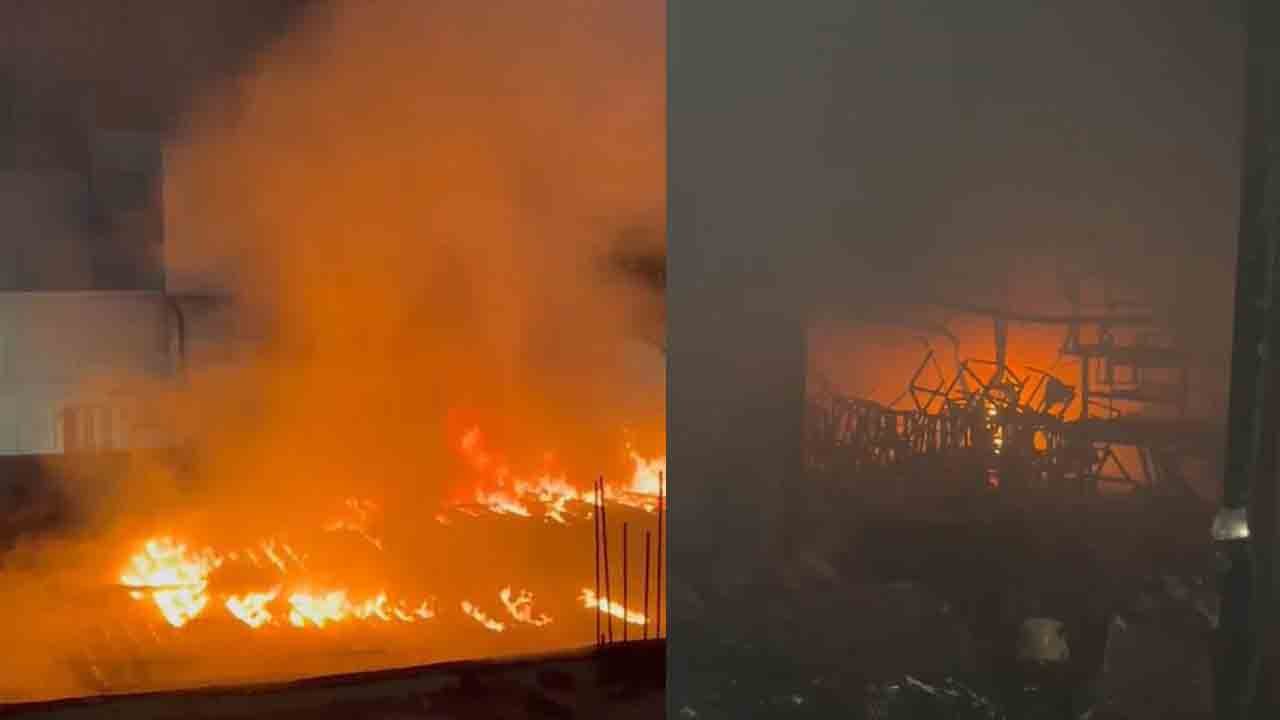 The fire broke out at the air conditioners repair workshop located near S A R Garden function hall around 11 pm. The fire soon spread to a chicken shop and onion godown located adjacent to the AC repair workshops.