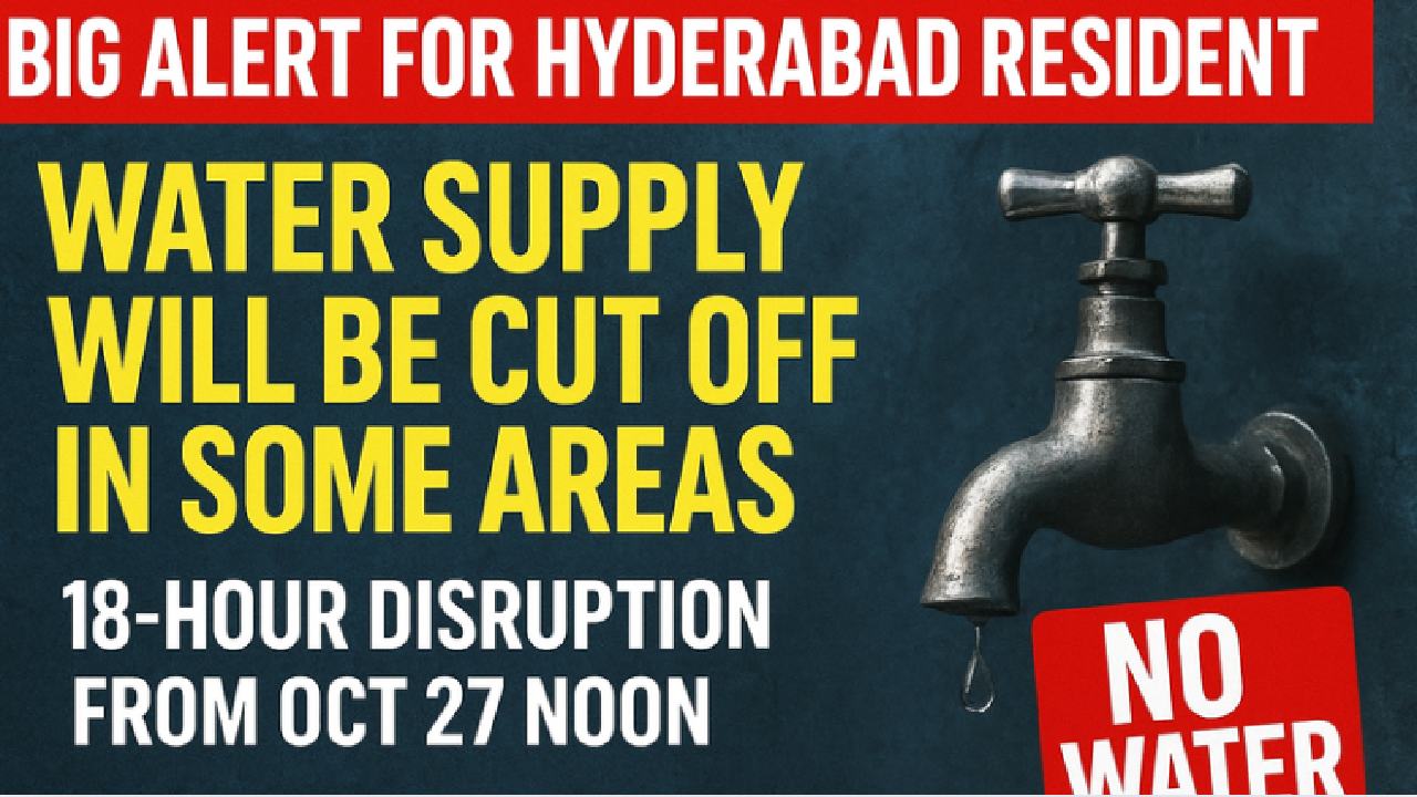 The pipeline extension work will begin at 12 noon on October 27 and will continue for a total of 18 hours till 6 am on October 28. The work of connecting the MS pipeline from Maredpally to the control room via Sports Ground, Lee Royal Junction, Balamrai is part of this extension. Officials said in a statement that due to this work, water supply will be completely disrupted in the following areas. The residential areas are.. Nallakunta, Prakash Nagar, Mekalamandi, Bholakpur, Hasmathpet.