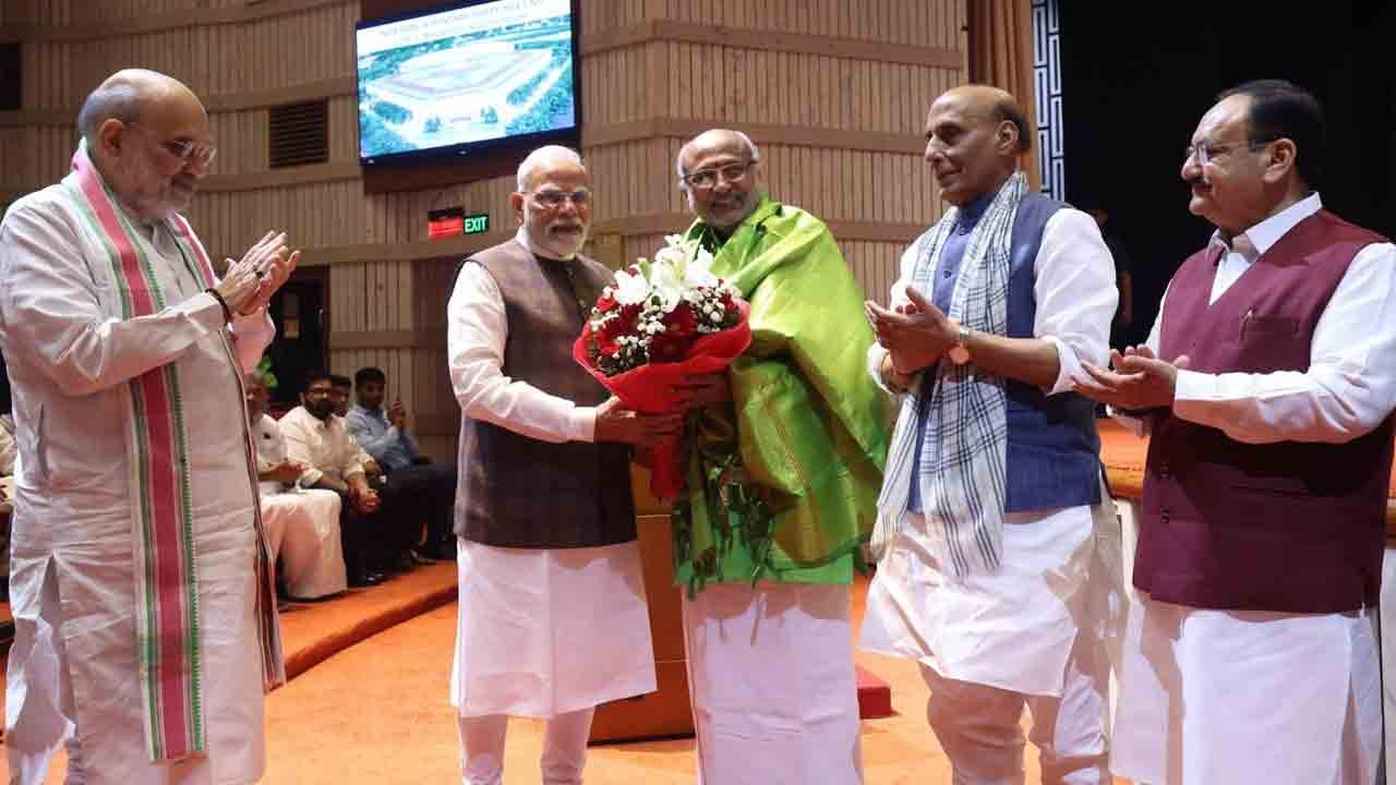 Radhakrishnan was felicitated at the meeting of MPs here by their top brass, including Prime Minister Modi and several BJP allies.