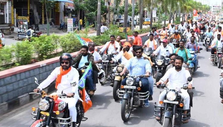 Kishan Reddy along with several leaders and workers of the party, began the bike rally from Parade Grounds in Secunderabad. BJP’s election in-charge for Telangana and former union minister Prakash Javadekar flagged off the rally from Secunderabad to Parkala in Warangal district.