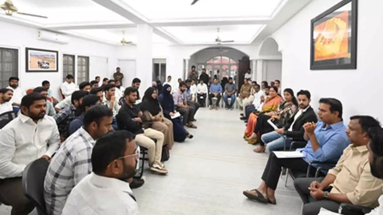 A group of students from the university on Friday called on Bharat Rashtra Samithi (BRS) working president K. T. Rama Rao to discuss their plan of action over the show-cause notice issued to the university authorities by the State government.