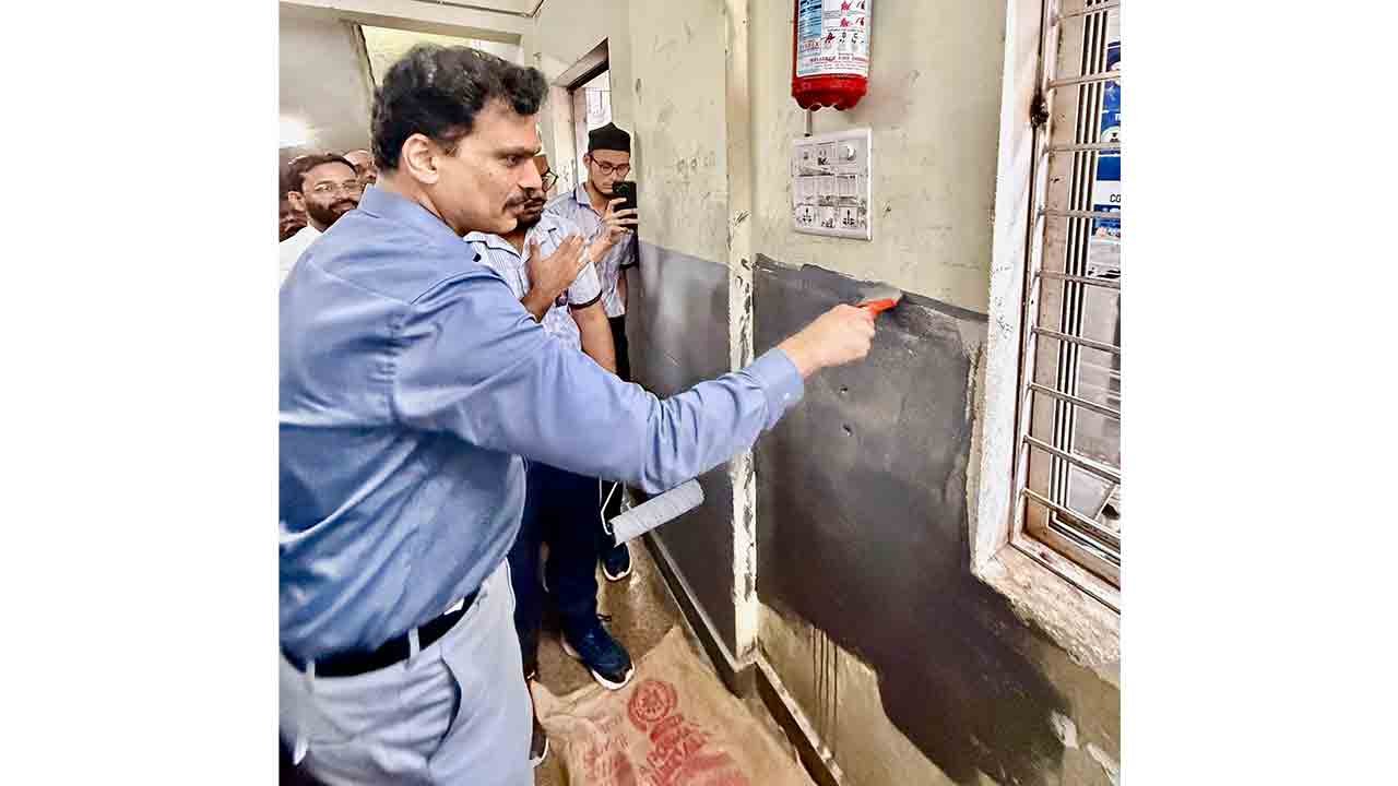 Hyderabad: To set a precedent for the importance of cleanliness, hygiene, in educational institutions B Shafiullah IFS, Secretary of the Telangana Minorities Residential Educational Institutions Society (TGMREIS), visited Saidabad Boys School today and took to painting the school’s walls, using a paint bucket and brush, marking the beginning of a new initiative focused on improving hygiene and sanitation across the educational institutions under TGMREIS.