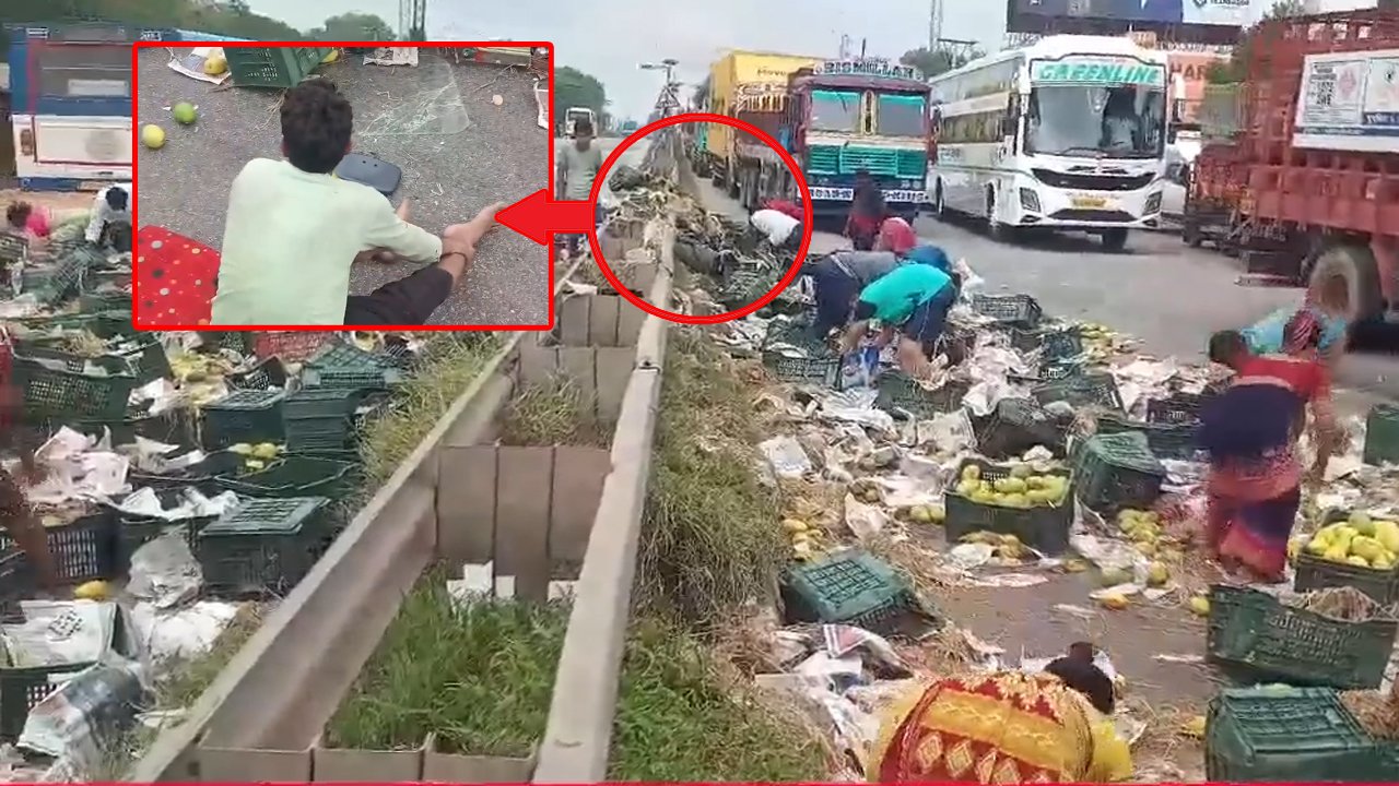 According to reports, the truck carrying a consignment of mangoes was on its way to the city when the driver lost control over the vehicle and the truck overturned on Thimmapur Road.